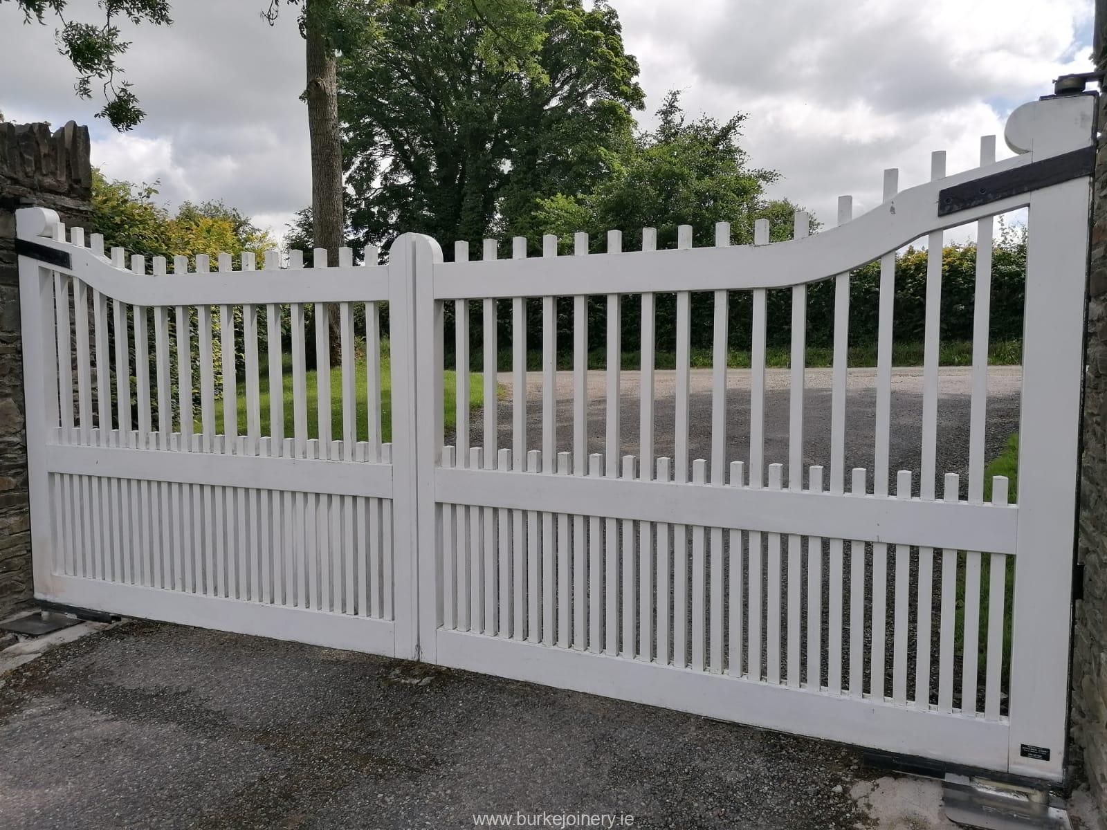 At Burke Bros Joinery Ltd, we specialise in bespoke joinery and the expert manufacture of wooden gates and timber gates across Dublin, Kildare, Tipperary, Kilkenny, Wicklow, Laois, Meath, Carlow & across Leinster. Our skilled craftsmen design, build, and install high-quality wooden garden gates, sliding wooden entrance gates, swing wooden entrance gates, automatic gates, garden shed doors, side entrance gates and garden gates, tailored to meet your exact requirements. Whether you’re looking for a custom timber gate to enhance your property’s entrance or durable wooden shed doors to complement your outdoor space, we combine traditional craftsmanship with modern precision for lasting quality and style. Based in Co. Kildare, we take pride in delivering exceptional bespoke joinery solutions with expert installation and a flawless finish throughout Leinster and Ireland.