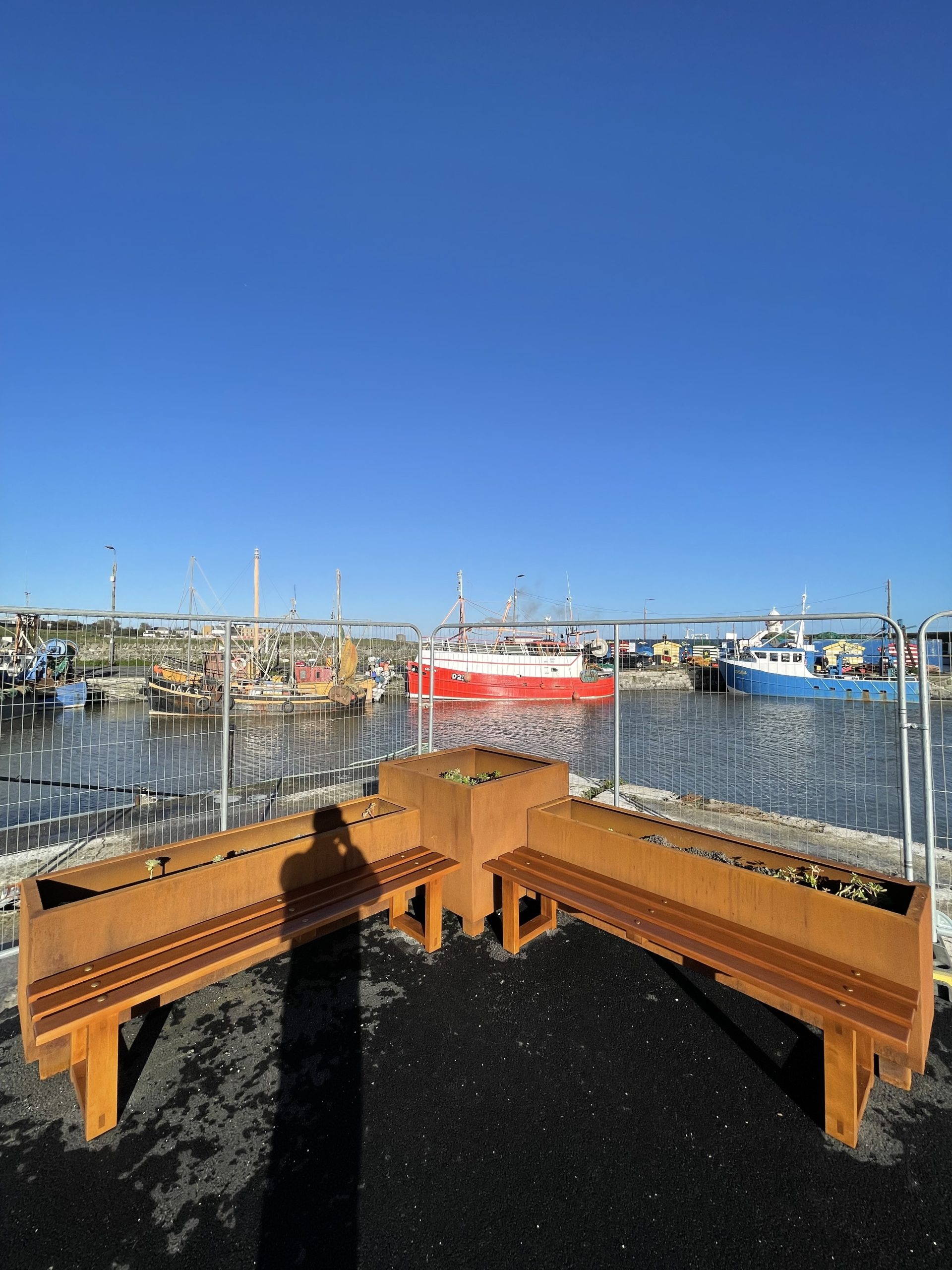 As part of the Balbriggan rejuvenation plan we supplied and installed hardwood benching to the harbour area. This created a leisure destination for the public and enhanced the location adjacent to the town beach.